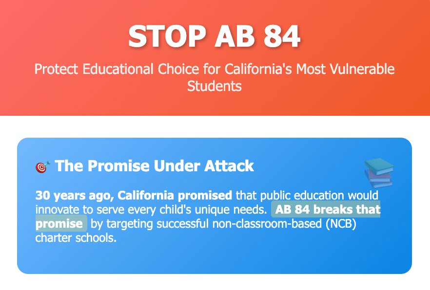 🚨 AB 84 THREATENS CALIFORNIA’S MOST VULNERABLE STUDENTS